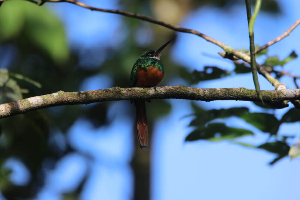 Entre las aves observadas destacan tucanes, tangaras, colibríes, oropéndolas, reinitas migratorias y especies emblemáticas como el Pavón y el Tucán pico iris, demostrando el enorme valor ecológico del destino.